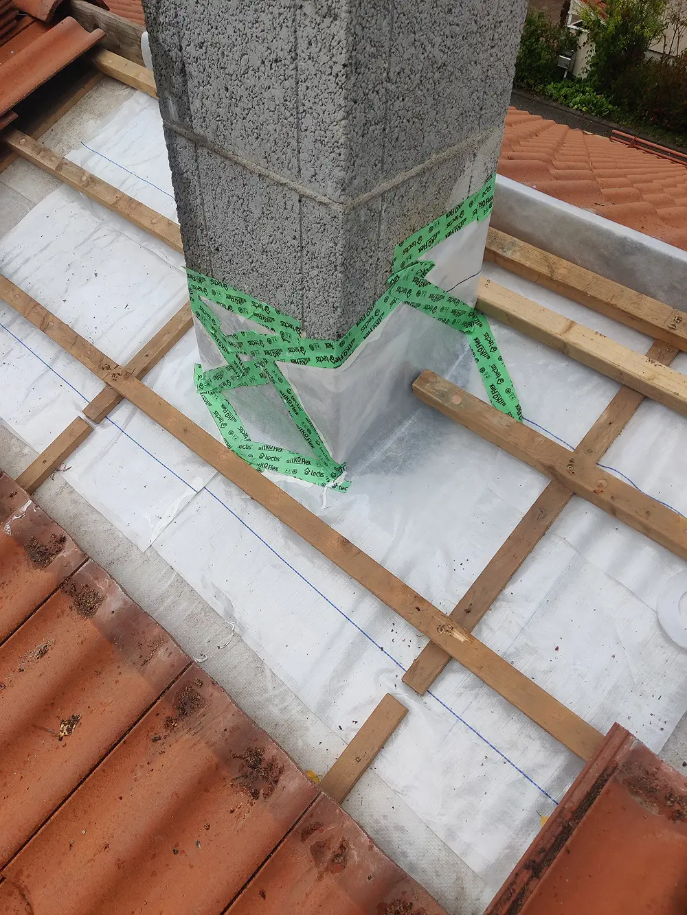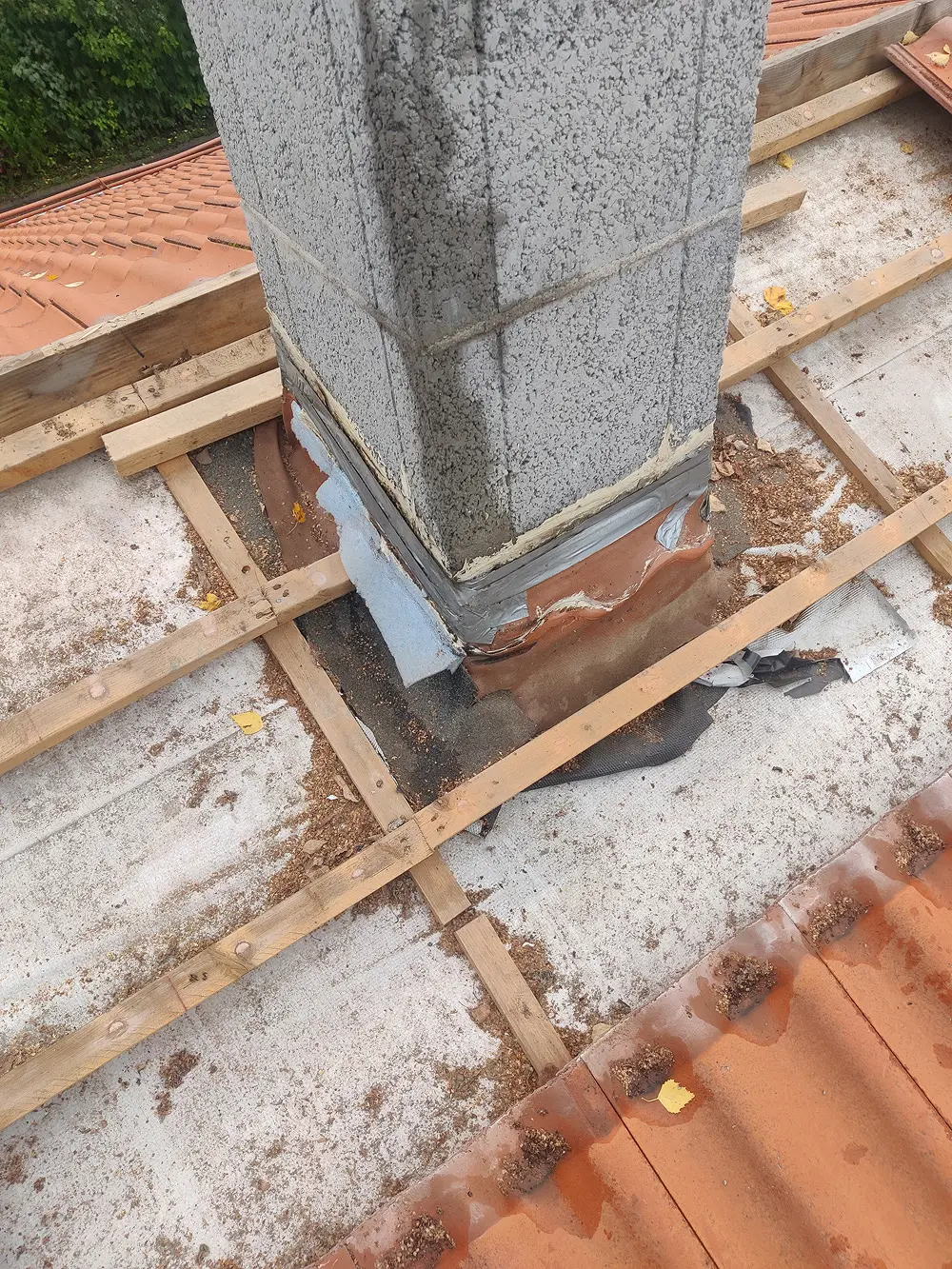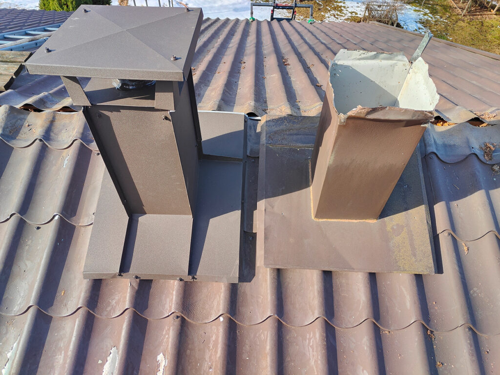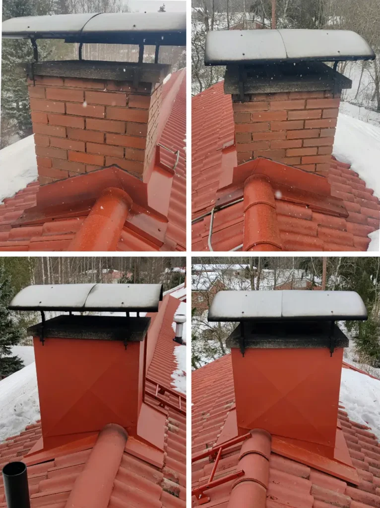 Piipun läpiviennin korjaus ennen ja jälkeen